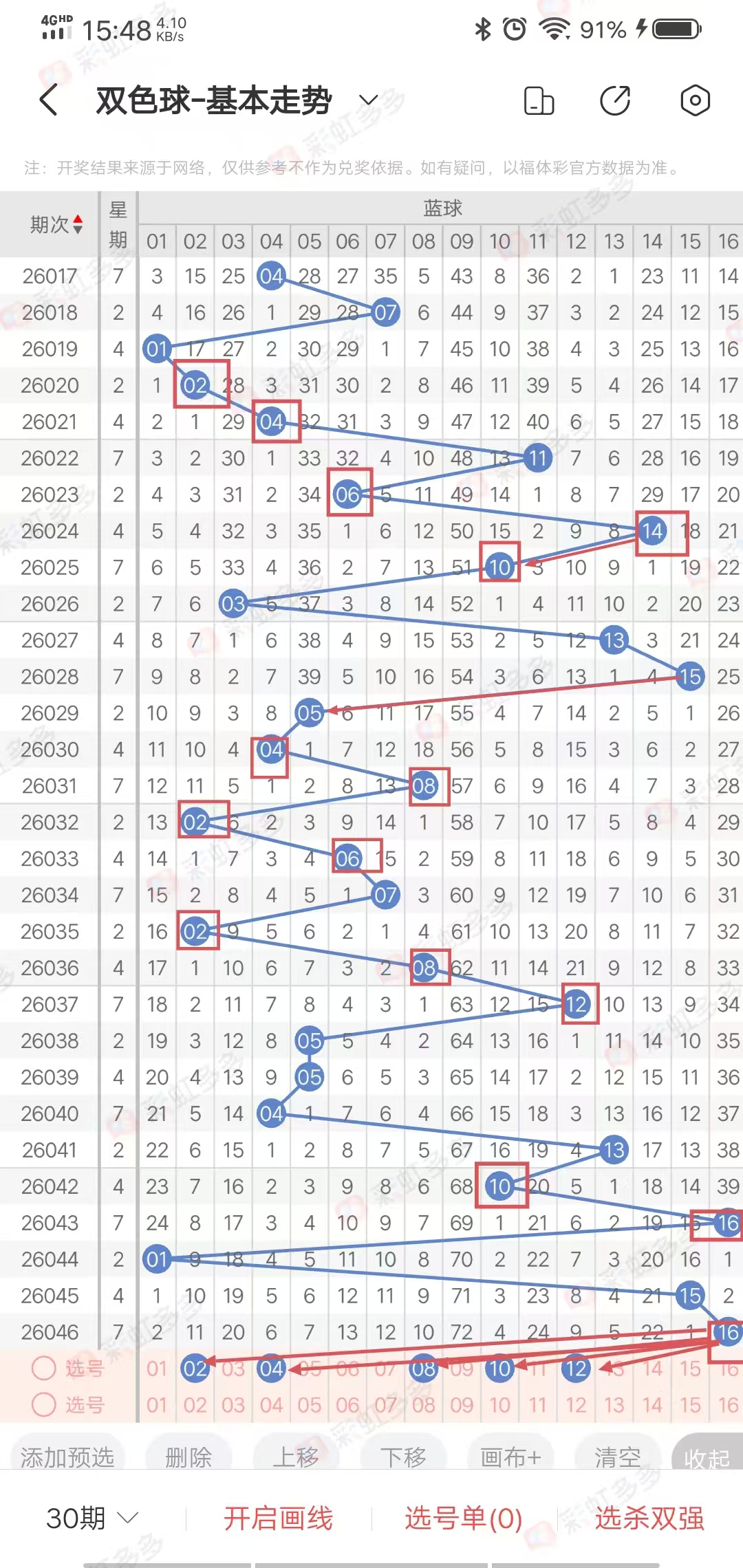 2026046期双色球开奖号码为: