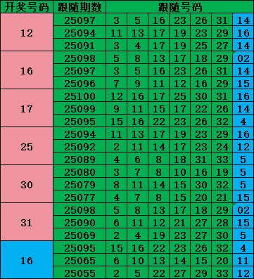 蓝球上期开出16号,近三期记录统计开出16号的跟随最多的号码是: