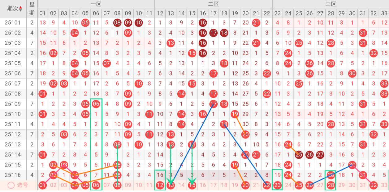 根据以上特点,我们对双色球第25117期进行如下分析:
