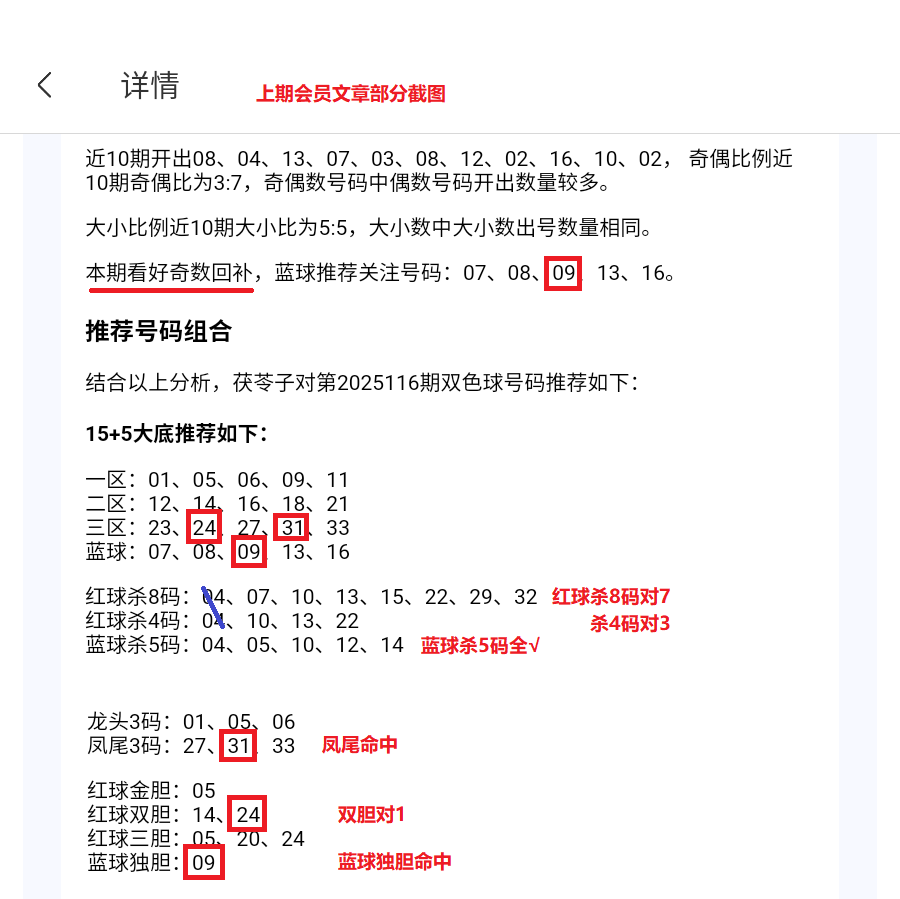 结合以上分析,茯苓子对第2025117期双色球号码推荐如下: