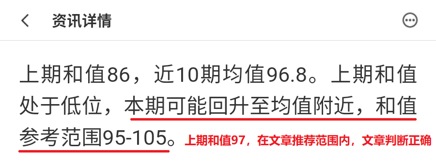 上期和值97,在免费文章推荐范围内,文章判断正确!