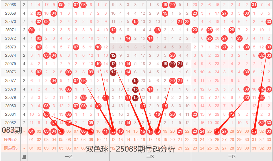 双色球:25083期号码落位分析