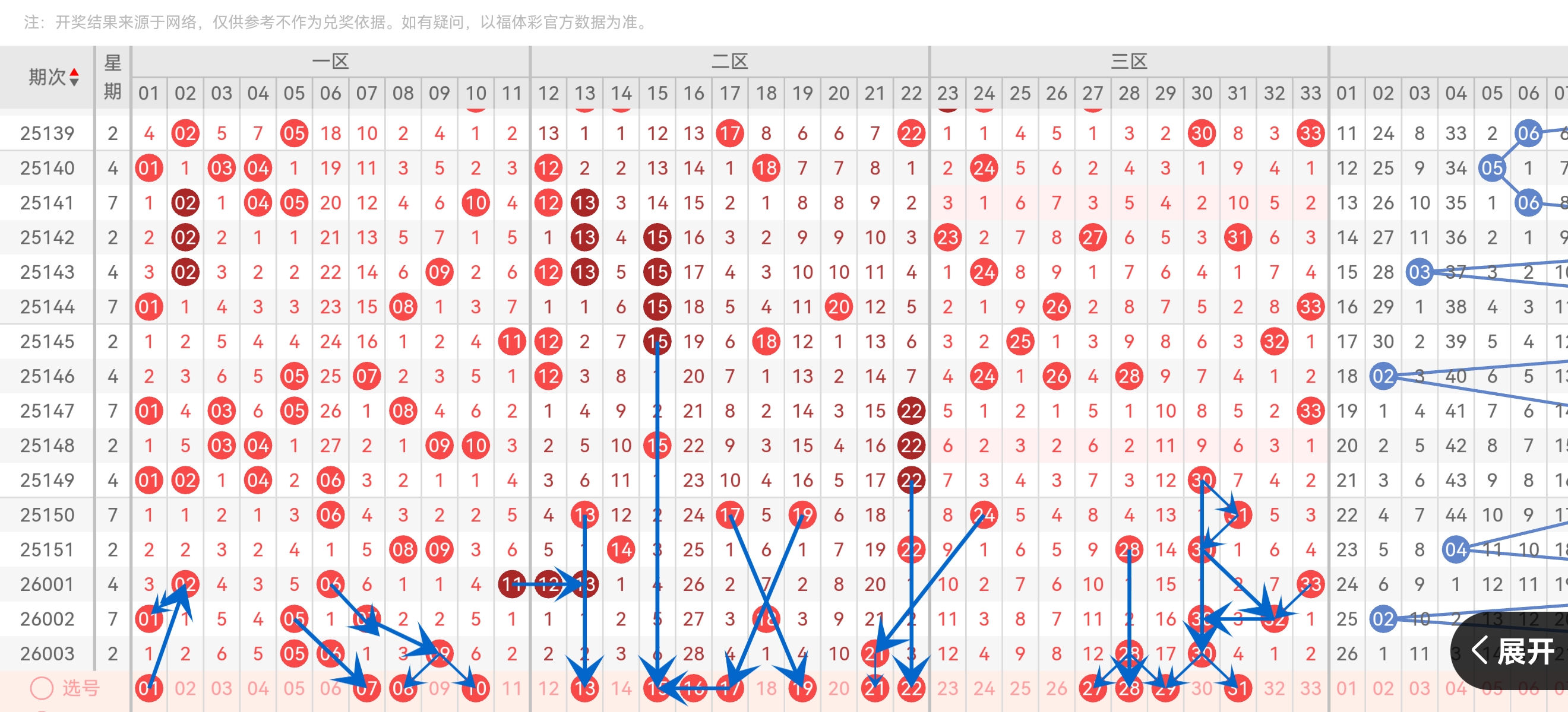 三区(23-33)持续强势,30 成“常驻嘉宾”(10期4次)。