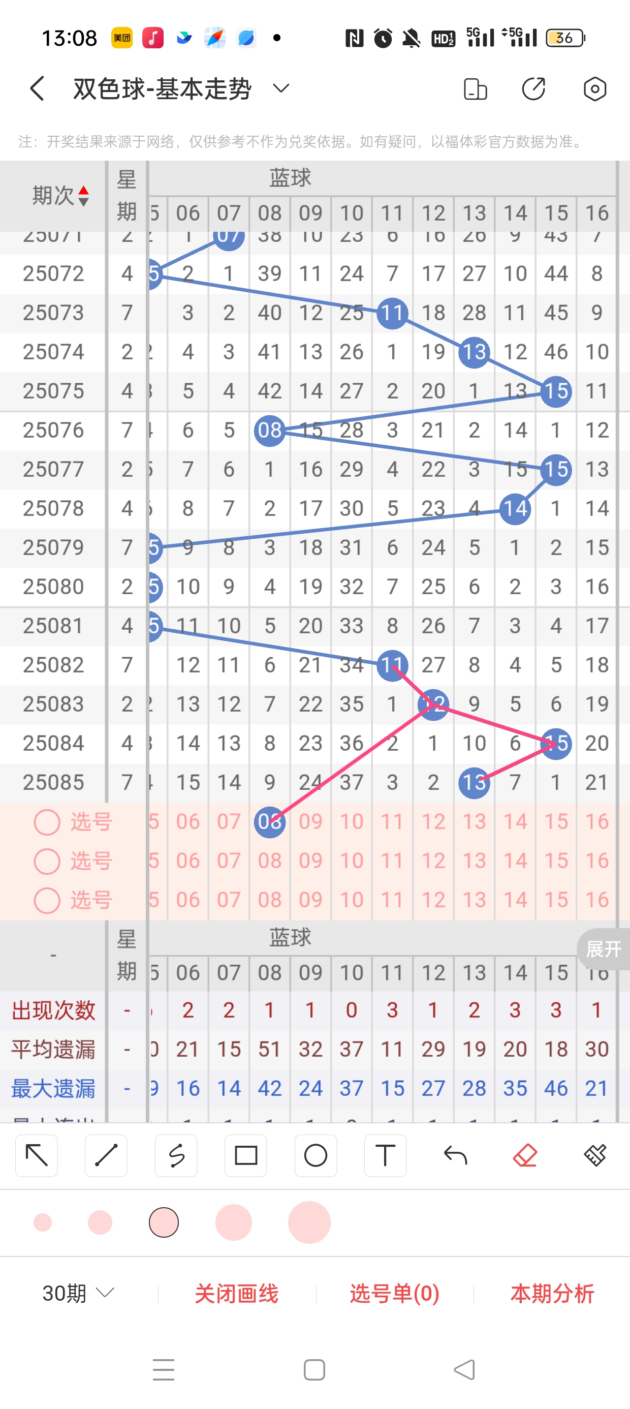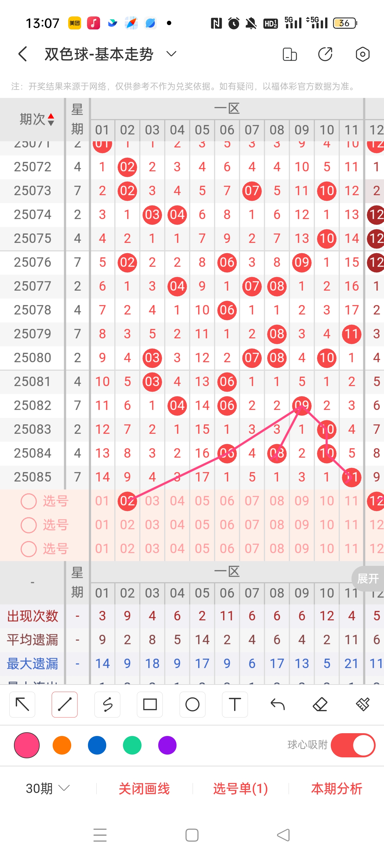 后区(1-16)近83期本区012路16:26:43,1/2路热度高,本期着重0路。8已遗漏9期,与12之间呈现向左遗漏递减态势,需防。
