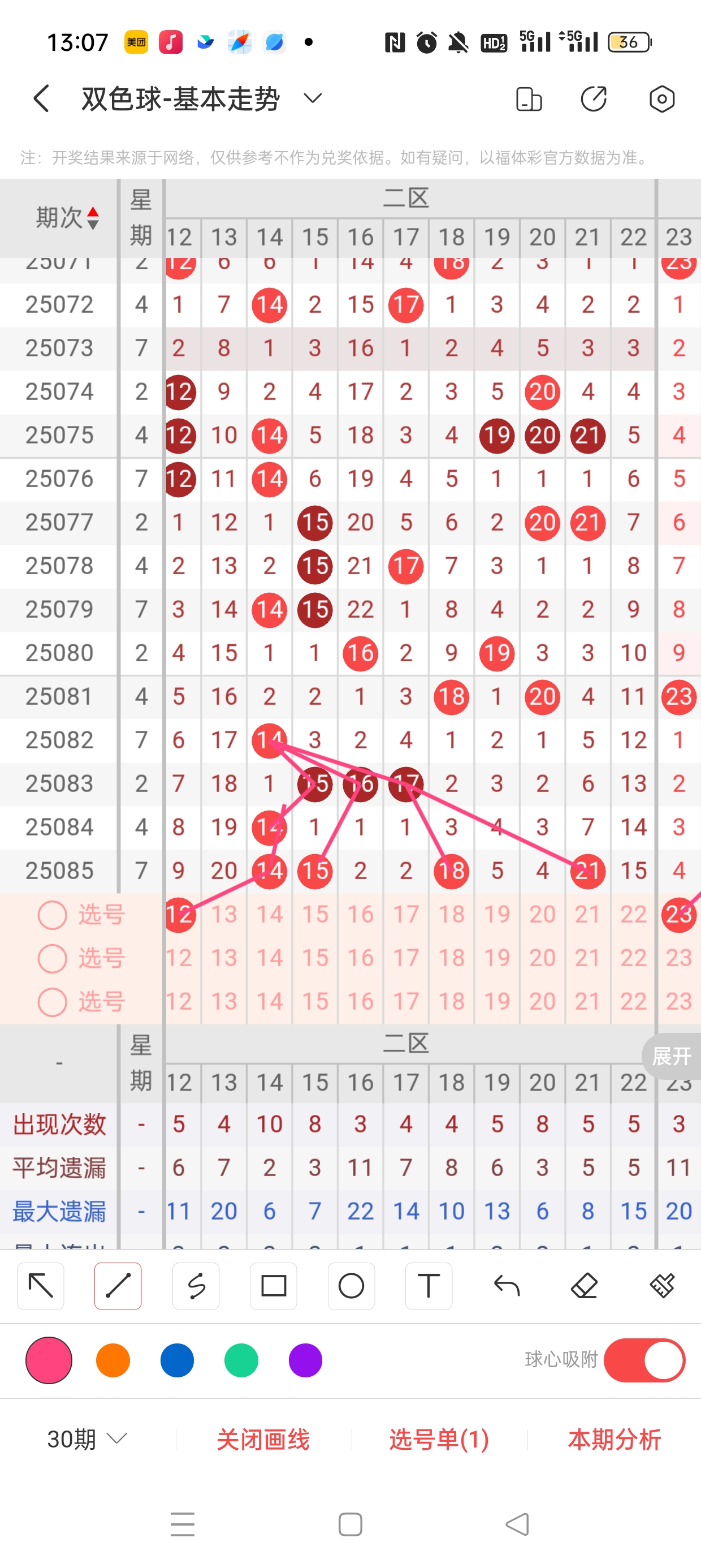 25085期开奖结果:11、14、15、18、21、24+13,奇偶比3:3,大小比2:4,和值95,012路402,邻孤传0邻4孤2传,同尾号14、24,传号14、24,连号14、15。总结完毕,下面开始本期分析。