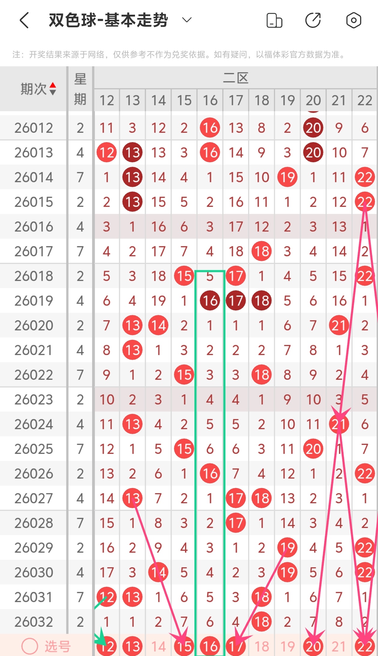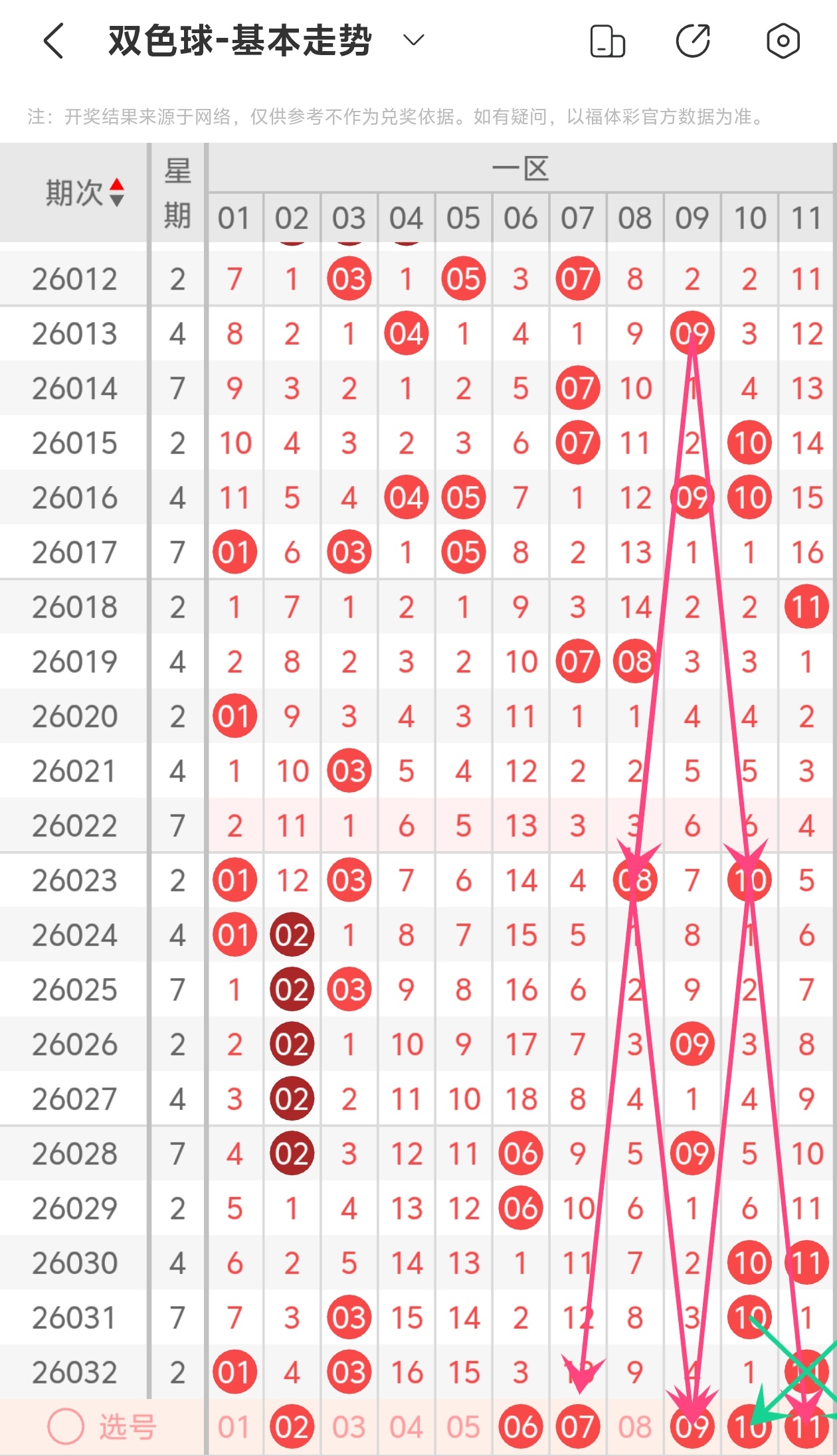 红球推荐:02 06 07 09 11 12 15 16 20 22 23 26 29 30 32