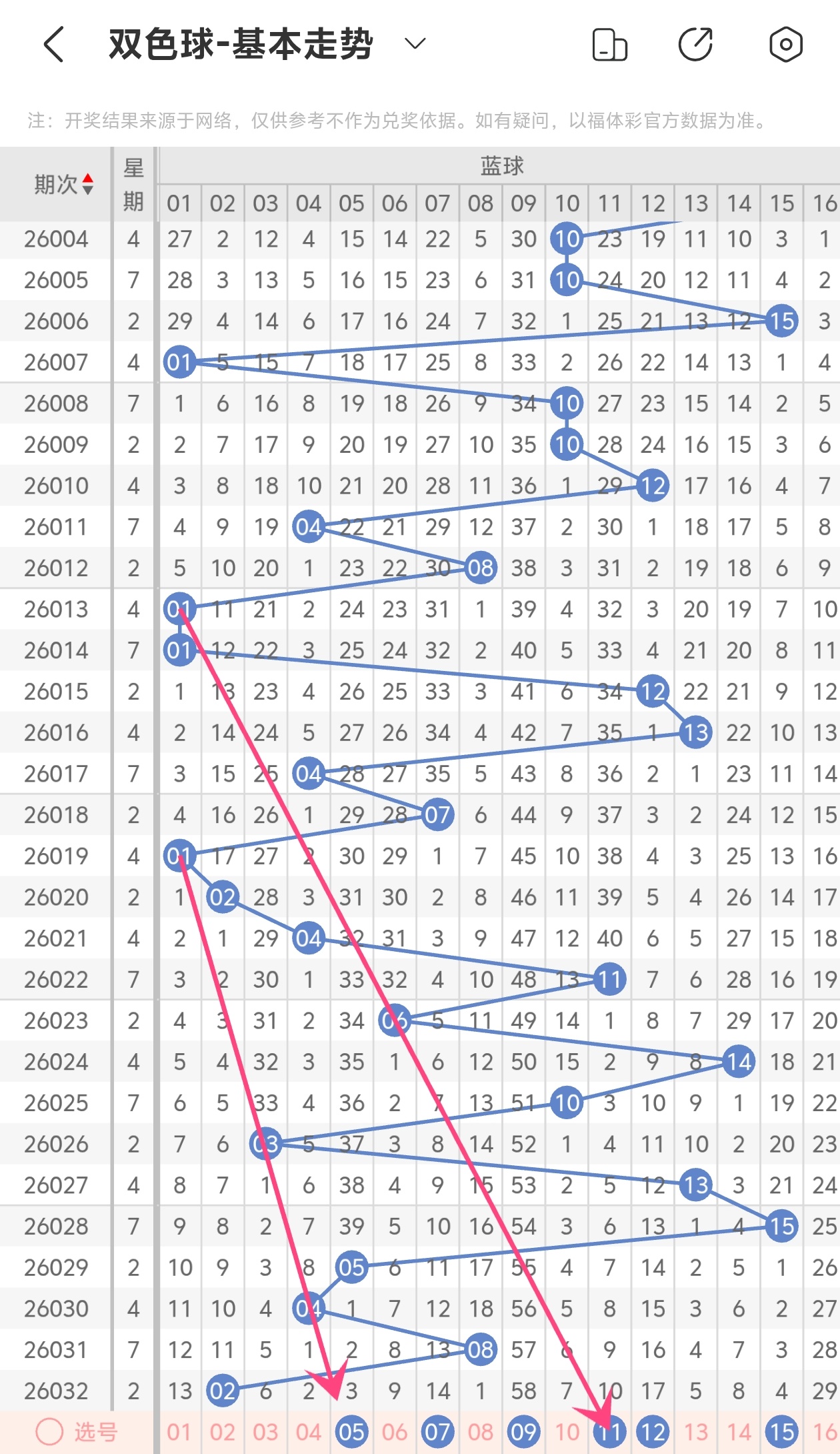 下面双色球的蓝球走势图分析: