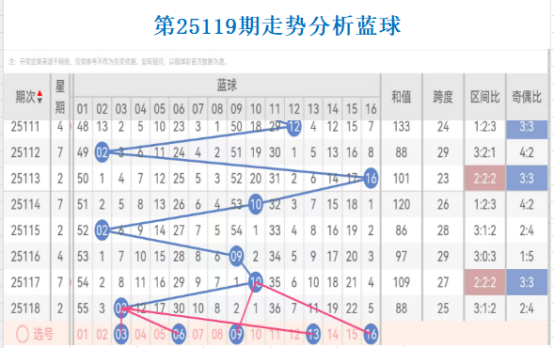 · 16: 最大蓝球,偶数和1路码,是追冷或博极限的常见选择。