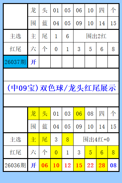 双色球第26037期(综合图文),单选推荐,视频上期中4+0