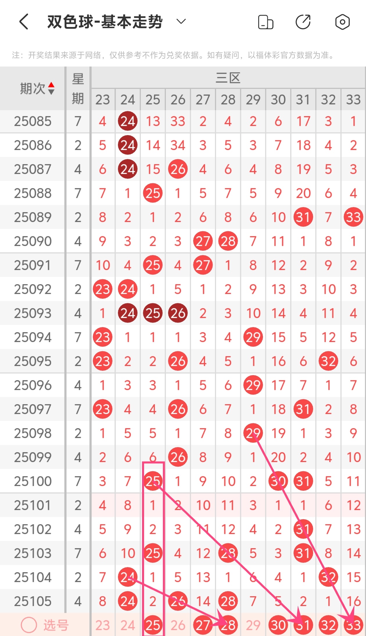双色球第2025106期趋势分析【上期拿下4加0】