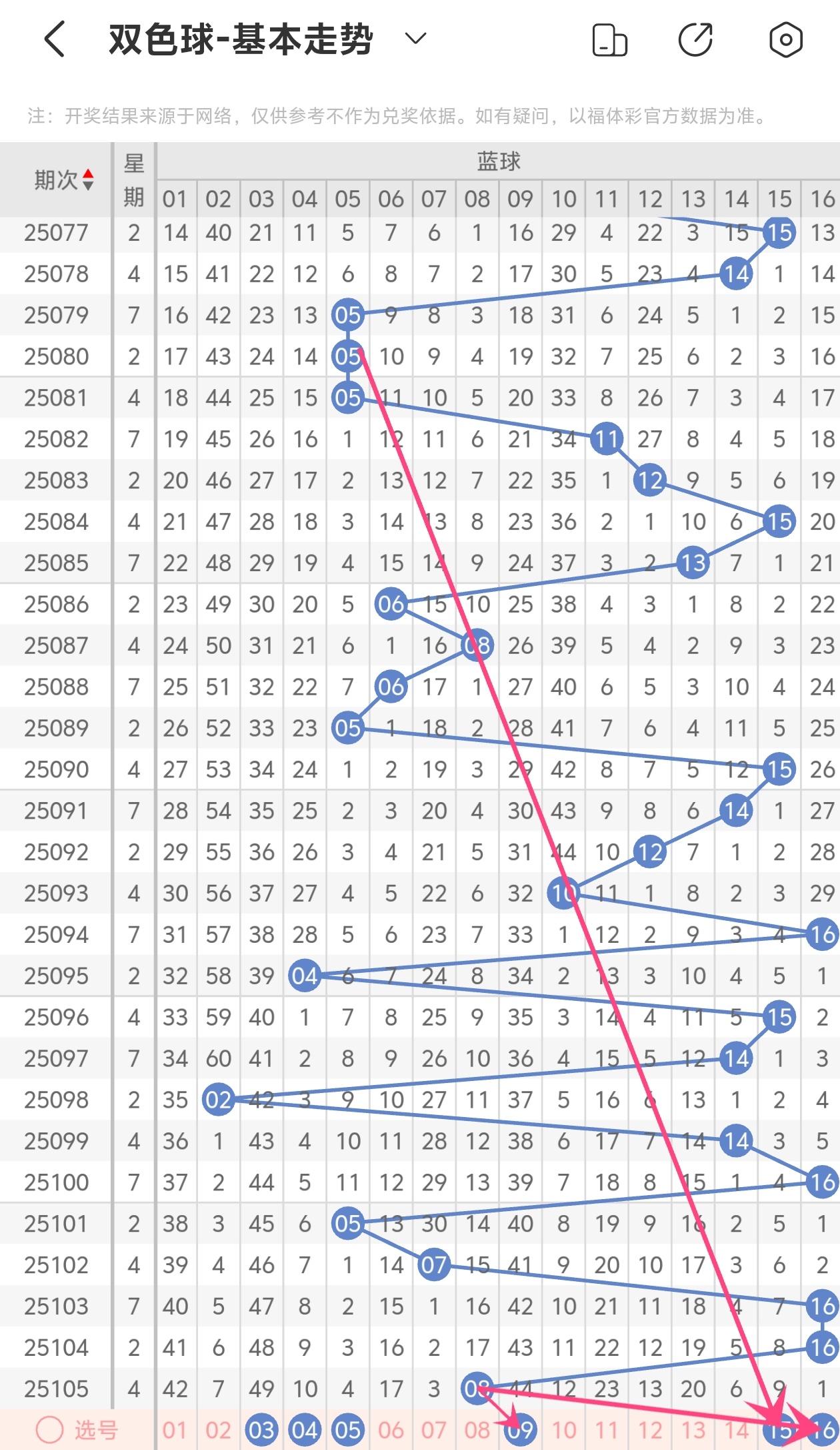 下面双色球的蓝球走势图分析: