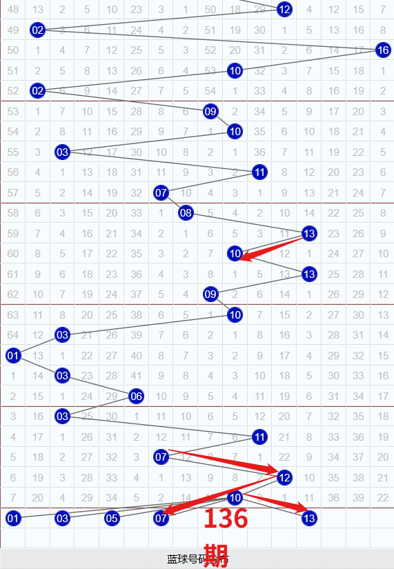 【上期开出蓝色球号码为10】近3期蓝号开出尾数情况统计:第25132期开出尾数1,属于1路尾,1路号码;第25133期开出尾数7,属于1路尾,1路号码;第25135期开出尾数0,属于0路尾,0路号码;
