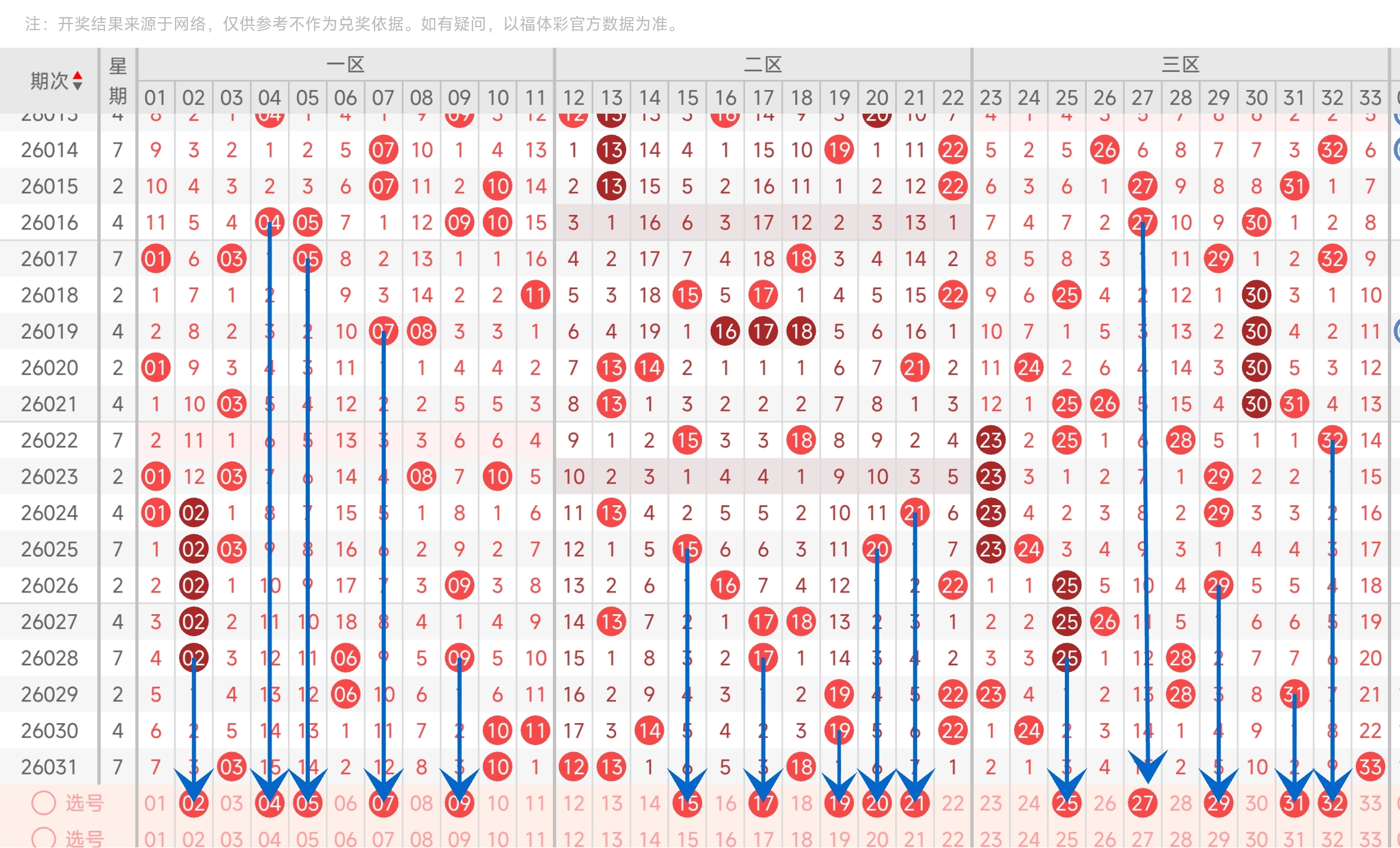 第26031期双色球文章中推荐中命中3,10,33等3个红球,蓝球命中8。