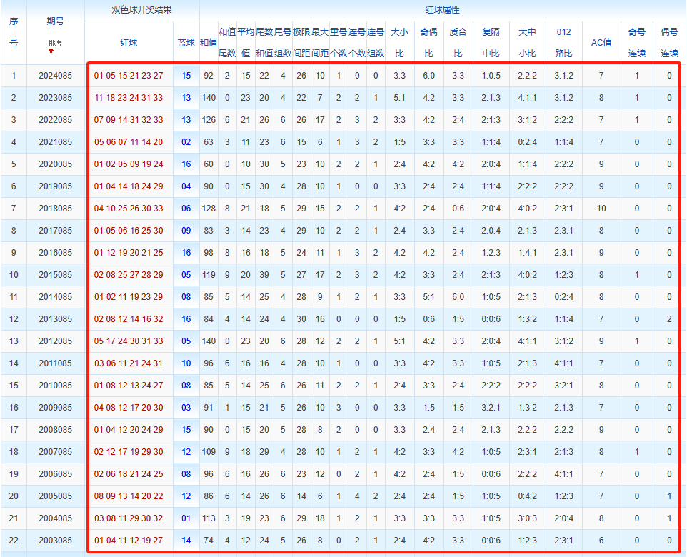 本期双色球研究分析从以下几个方面入手:①往年同期分析②定位分析(奇偶分析、012路分析、振幅分析、遗漏值分析)、③大小比分析、奇偶比分析、012路比分析、复隔中分析、④临位间距分析等。