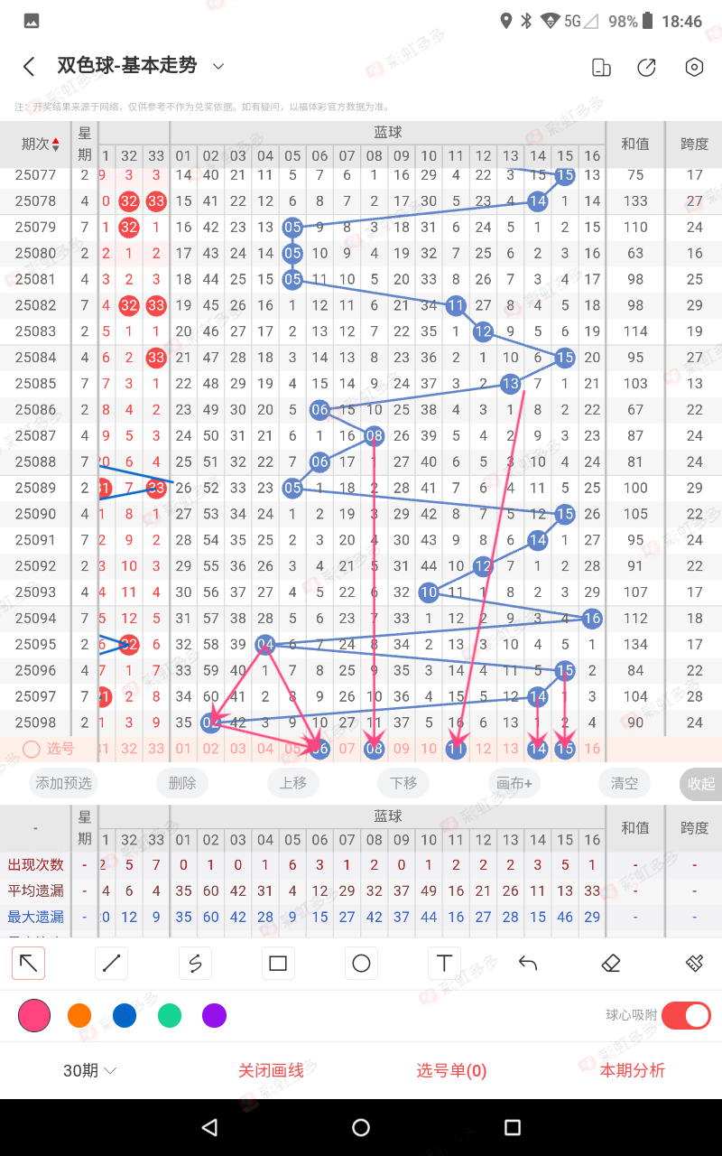 比如,098期蓝02号,097期蓝14号(属2路)那我们这期要杀的蓝号就是02+2=4大16减16,4为本期杀号,008期错,039期-040期,060,074-075期错,防三连错