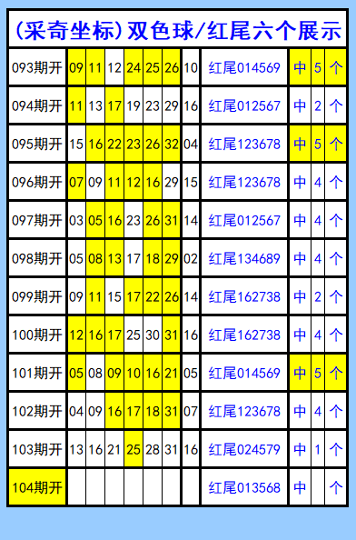双色球第104期图文(采奇坐标),红尾六个展示
