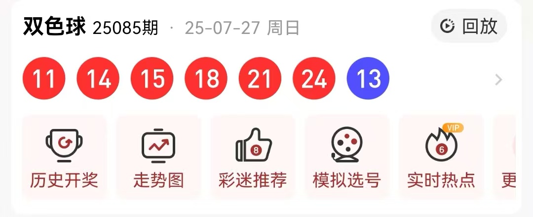 先来回顾一下第2025085期的双色球开奖结果:11 14 15 18 21 24+13以下是对本期数据的详细分析: