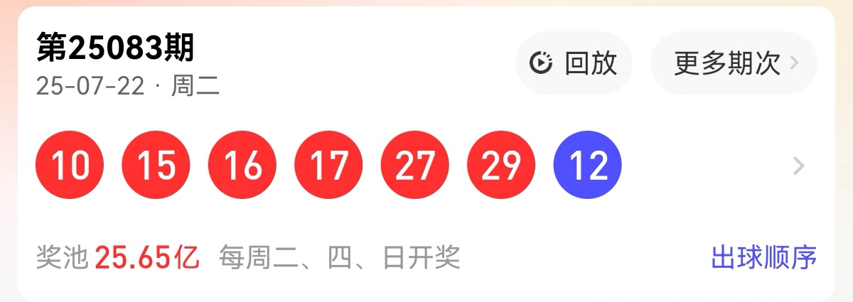 开奖号(第2025083期) :