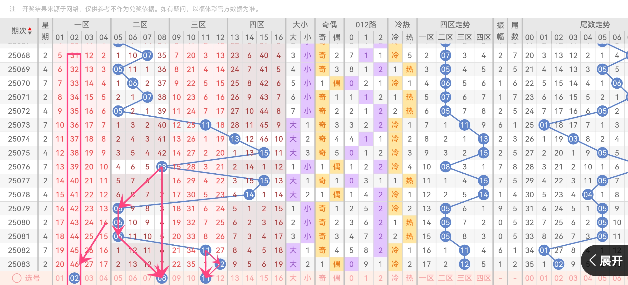 0路12开出后,统计显示 2路补位概率>88% (02、05、08、11、14);