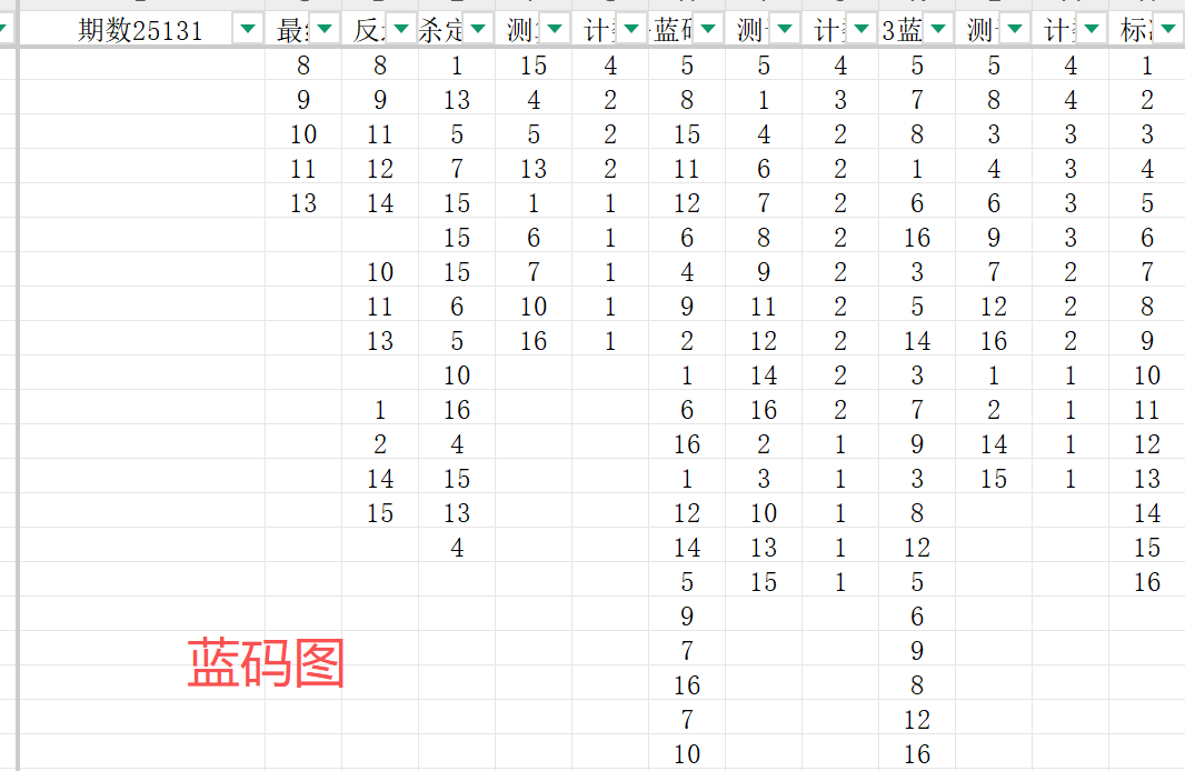 首先可以看一下蓝码的对比结果通过两个图表数据的对比,我们把蓝码的范围确定为8 9 10 11 13