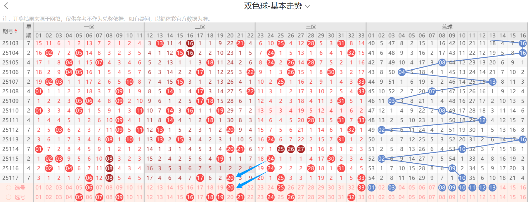重号仍然要看,看下来6.20.25.33有机会,防多开,如果喜欢8的可以防,也不排除极端再来一次,边号看两个左右,即5.7.9.16.18.19.21.24.26.32出号两个左右,蓝球上期给大家的思路完全正确,看低返奖率,看大家想不到的,或者长期没出的形态,比如边号,消失19期,是不是就开出了10,直播间给大家四码2.8.10.16,小车直接一码定蓝10正确,本期大包围1.3.8.9.10.11.12.13,更多更具体的直播间给大家分享,,如果有冲突则以小车其次直播间为主。