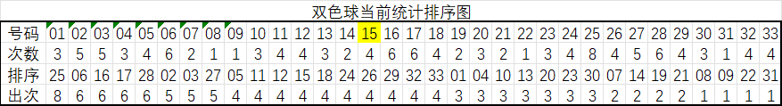 红球15码大底统计顺序:25,06,16,17,03,27,05,11,12,15,18,24,26,29,32