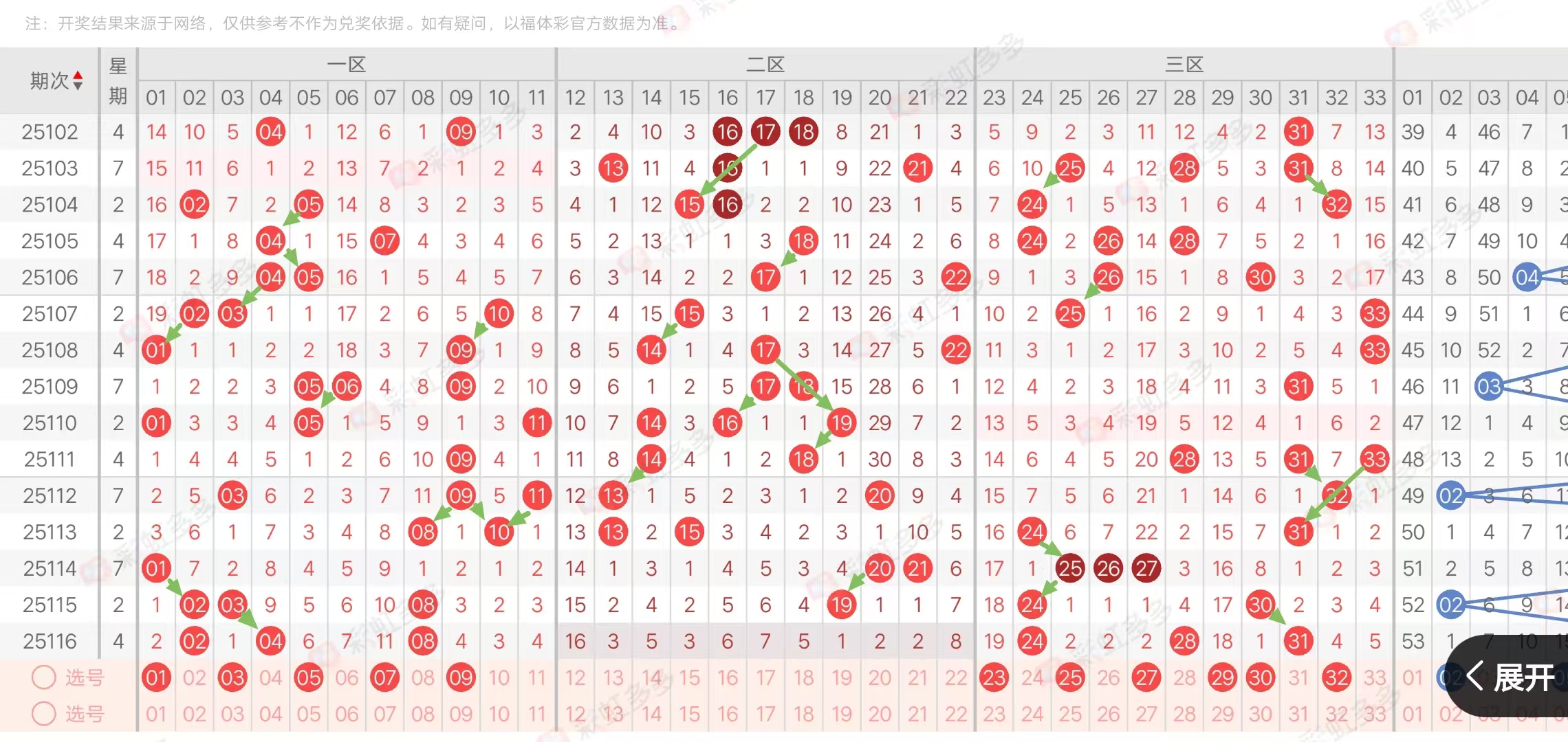 (三区:一区1-11,二区12-22,三区23-33)上期三区比3:0:3