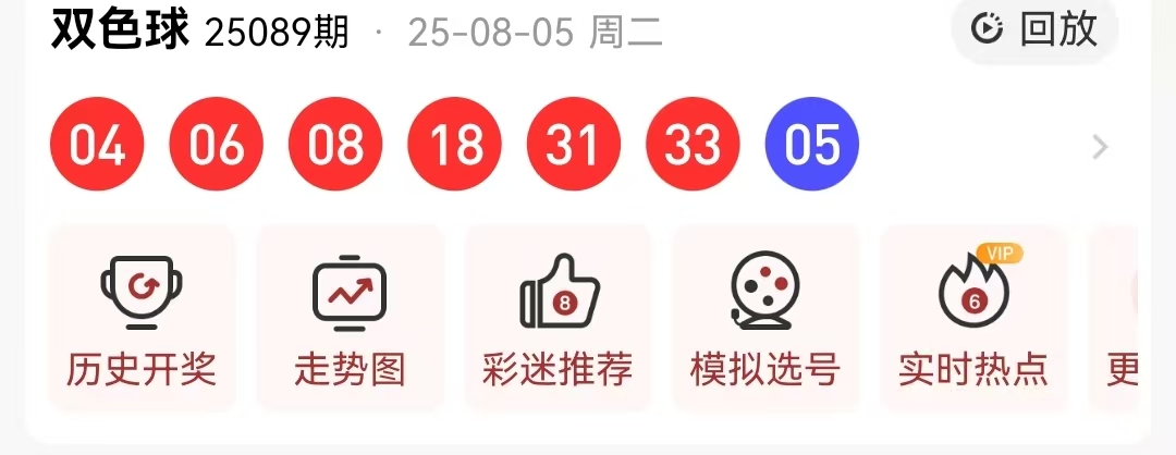 先来回顾一下第2025089期的双色球开奖结果:04 06 08 18 31 33+05,以下是对本期数据的详细分析: