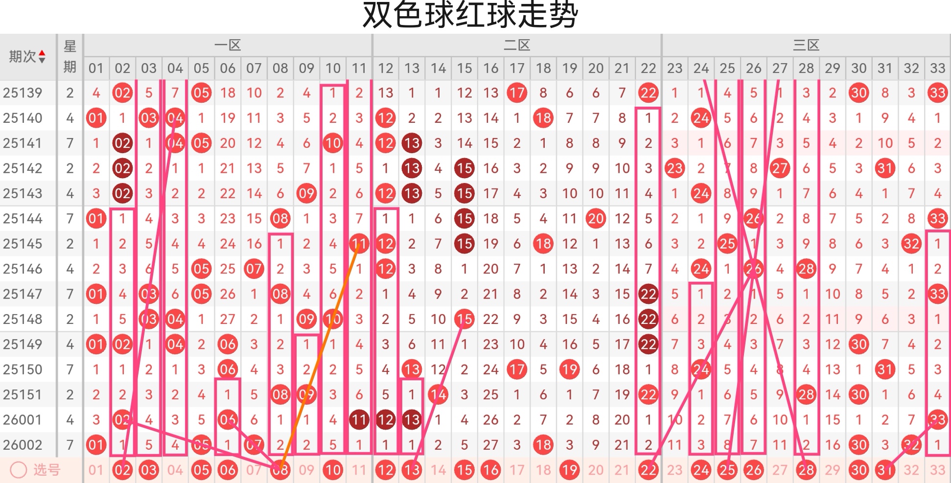 双色球第26003期基本走势分析如下: