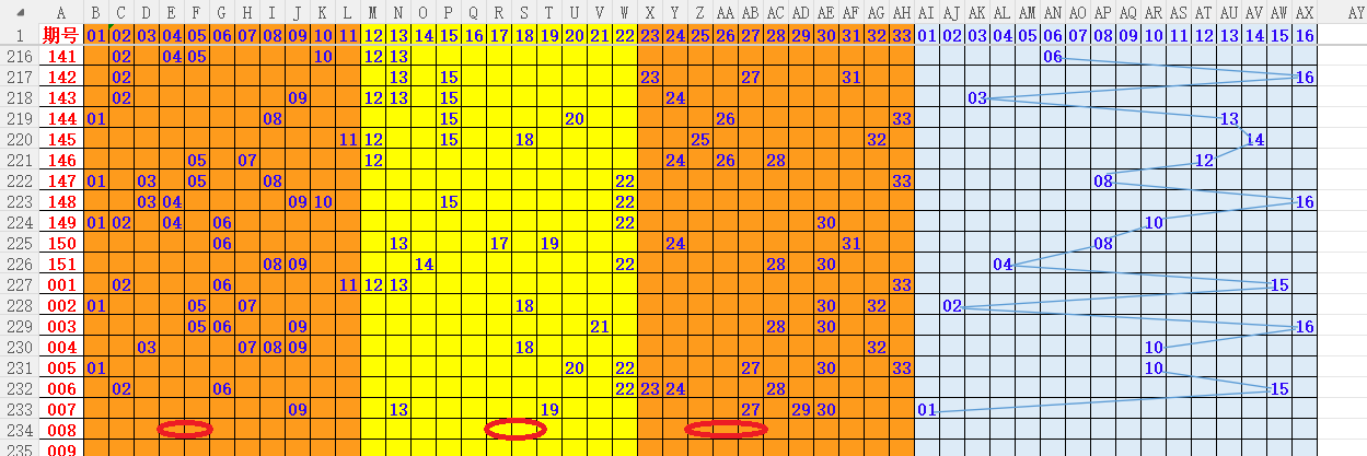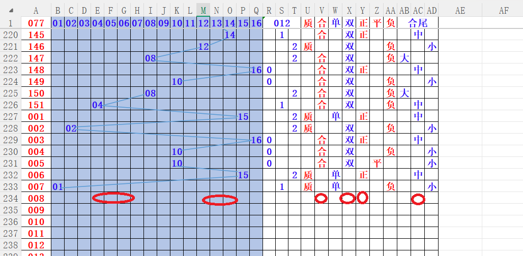 如上图4,012路分析012路,本期重点10路。重点     04 05 06 13 14