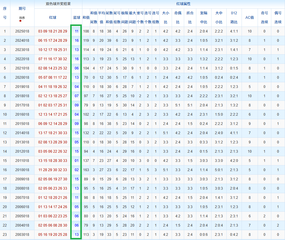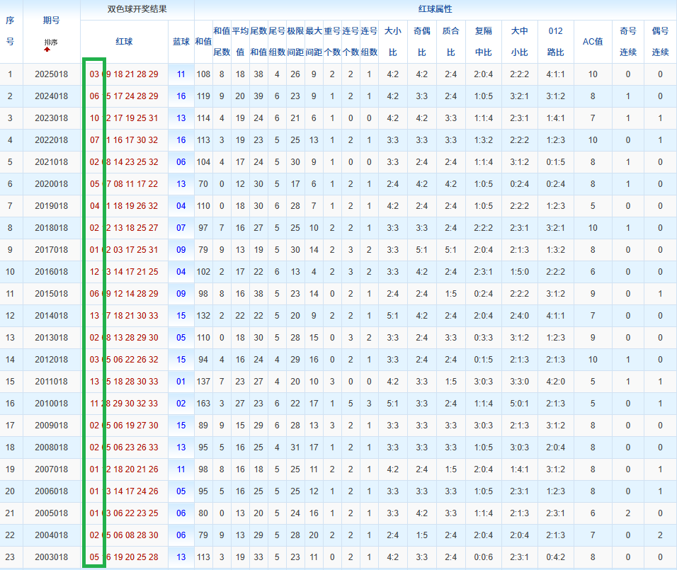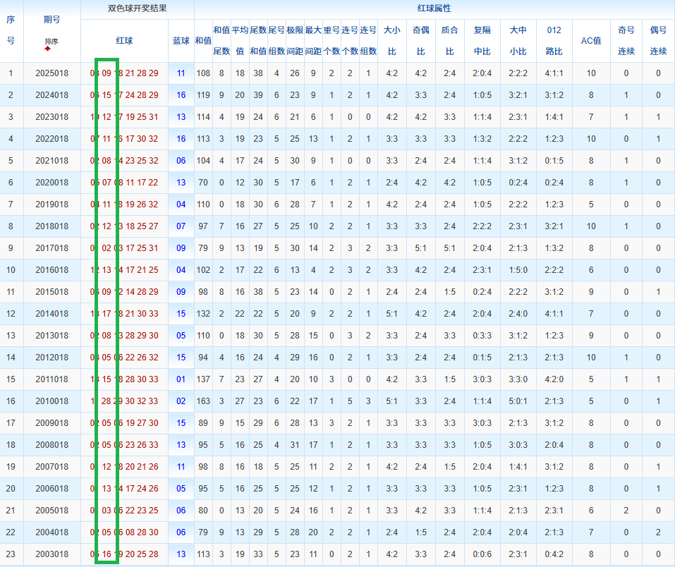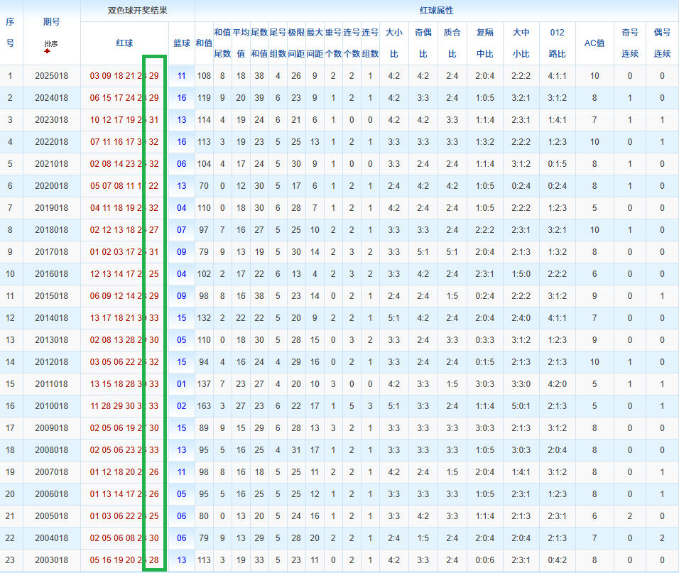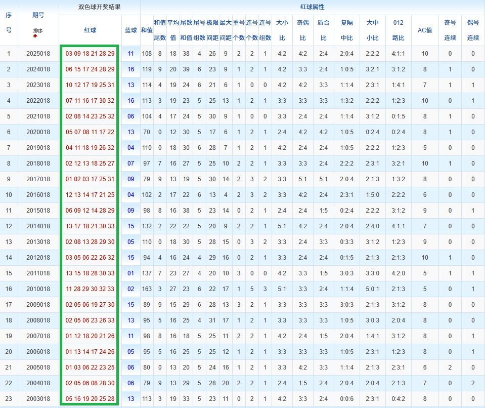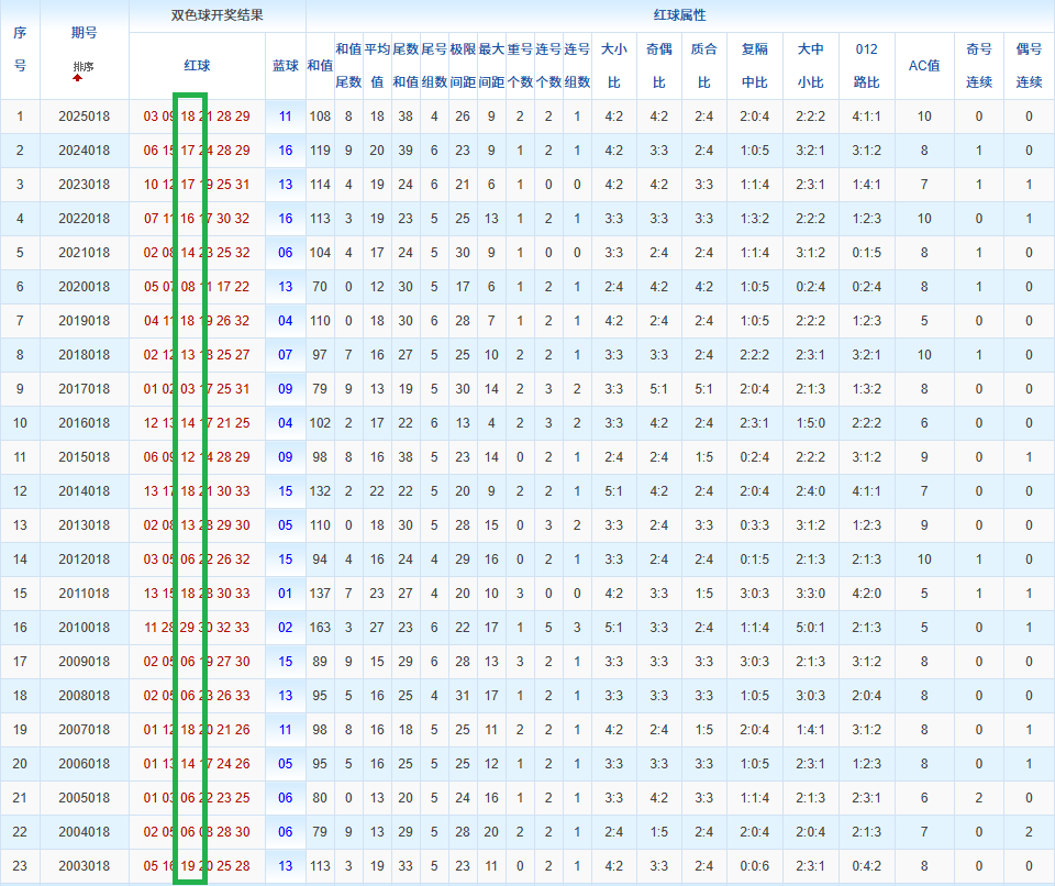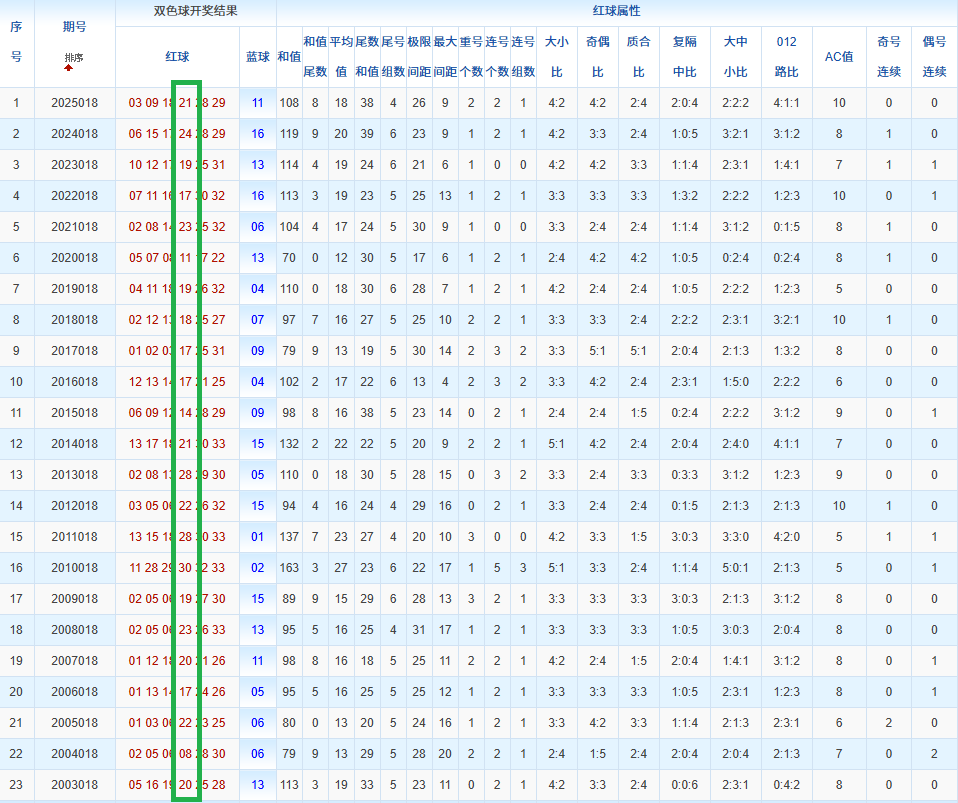 通过观察,我发现双色球往年同期的开奖数据与本期号码之间存在显著关联。具体来说,在红球中,从第一位至第六位,通常会有约4个位置上的数字与往年同期相同位置的号码一致;而蓝球号码中,也有多期开奖结果直接包含了往年同期的数字。因此,我们可以借助往年同期各位置上的号码,作为分析本期开奖情况的重要依据。在此基础上,还可结合往年同期的其他相关条件,进行综合性的号码组合推荐。