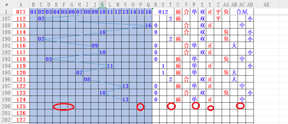 如上图4,012路分析012路,本期重点10路。重点 04 05 06 14 15