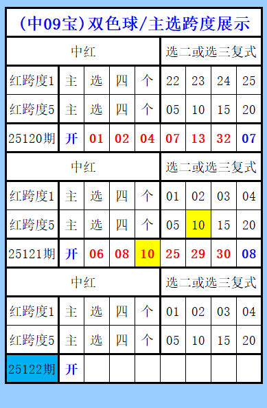双色球第122期图文(中09宝),主选跨度,视频上期中两蓝08