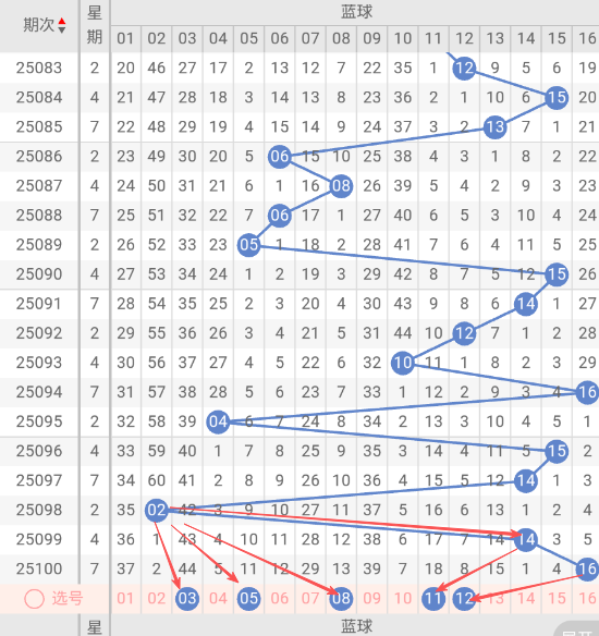 根据走势图近10期的走势看,蓝球在078期开出14蓝球之后,3小4大4小5大1小2大1大1小2大,再看下近10期的蓝球热码有回补的趋势,这种趋势规律本期判断极有可能开出小号,本期防蓝球11大号,蓝球本期重点关注03,05,08,11,12