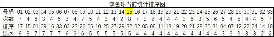 红球15码大底统计顺序:17,15,09,16,33,03,23,26,06,10,25,27,29,32,02