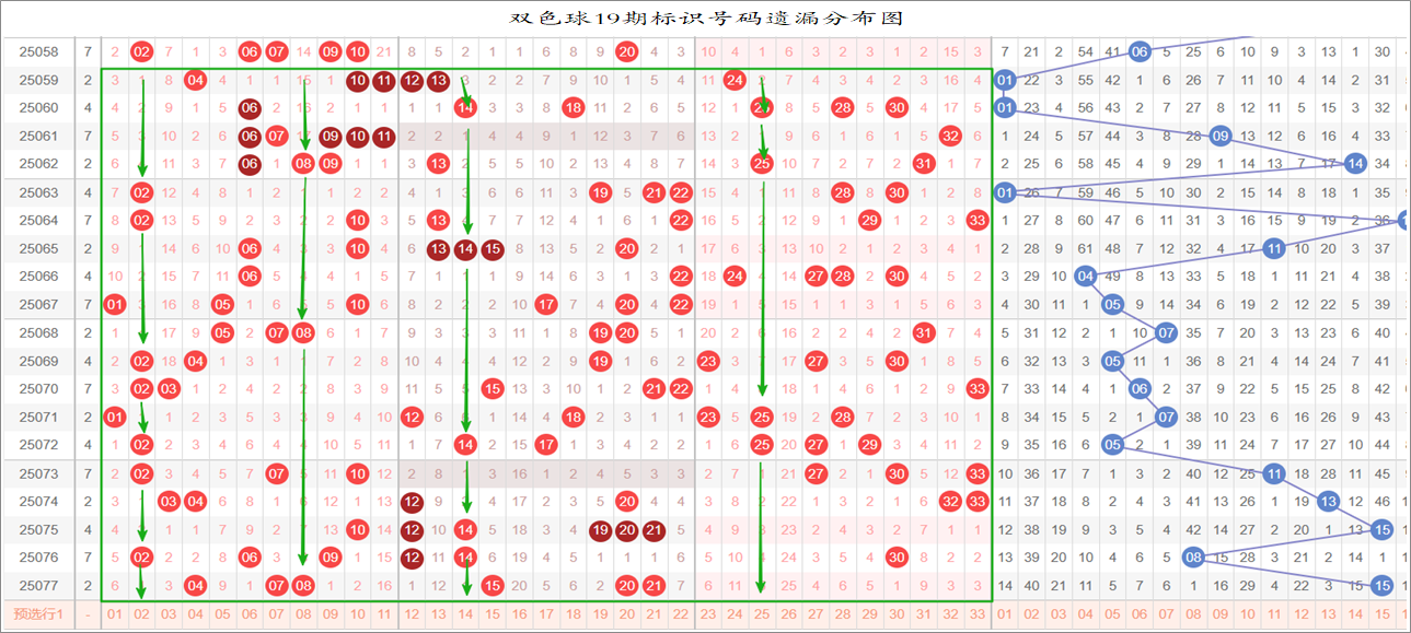 双色球第2025078期组号,去除上期统计排序同位置号码得出: