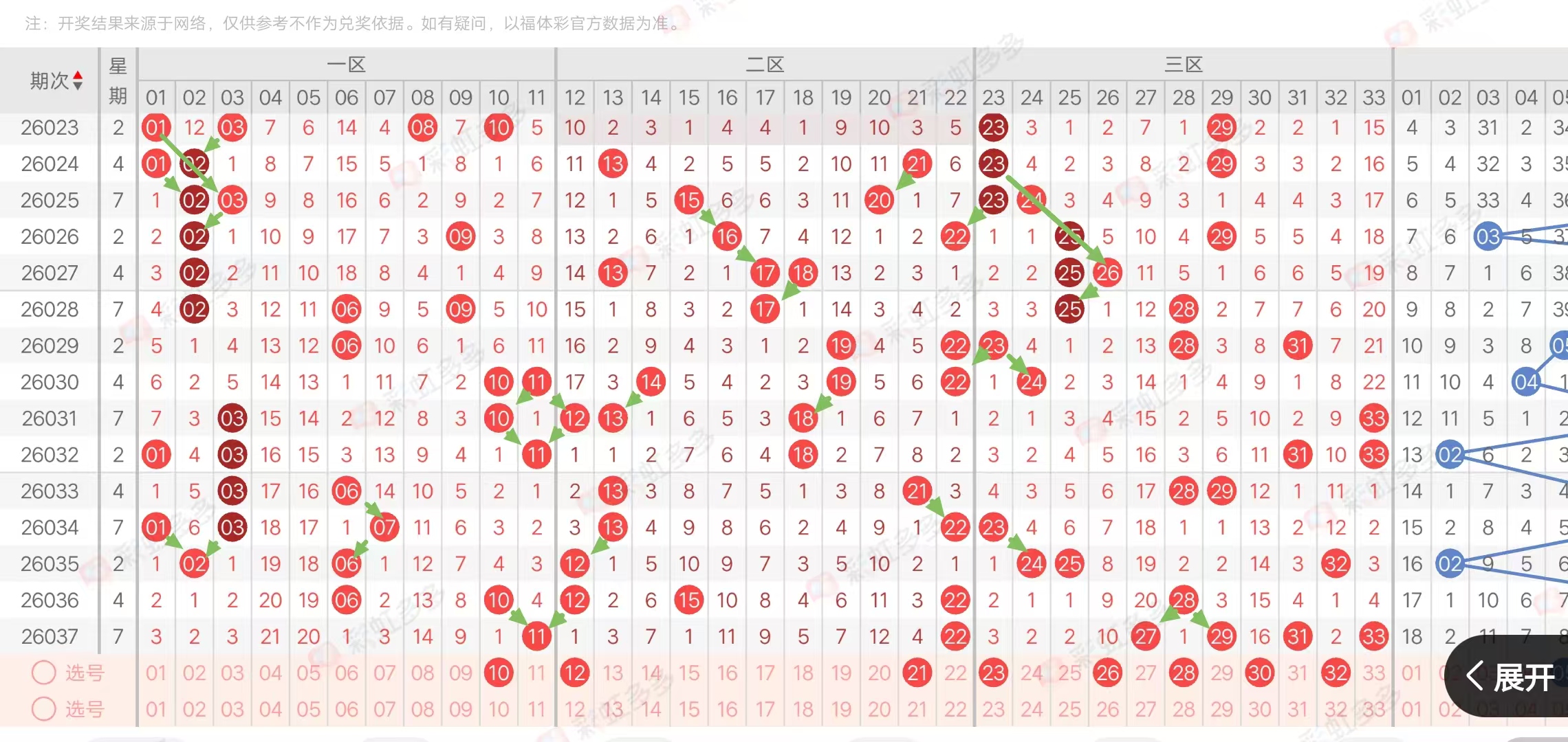 (三区:一区1-11,二区12-22,三区23-33)上期三区比1:1:4
