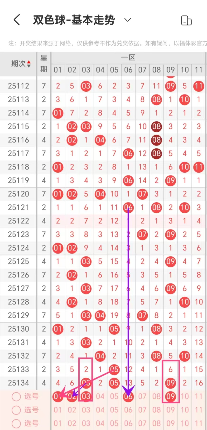 免费文章:奈斯做数据135期双色球分析(上期三胆对二,中5红)