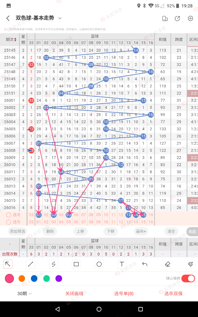 这个说明,二个红1+红2相加得出的和值,可以排除那个路数,也会错,甚至连错,抓有效规律,直到错为止,这期的蓝0路需考虑,本期防连期错