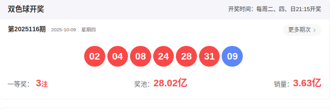 开奖号码:02 04 08 24 28 31-09