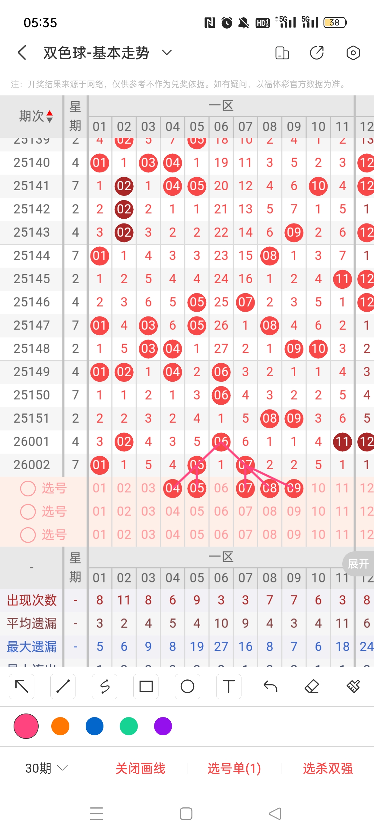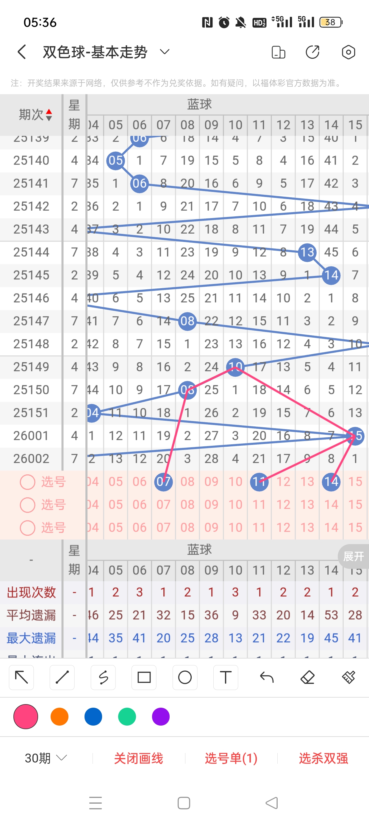 26002期开奖结果:1、5、7、18、30、32+2,奇偶比3:3,大小比2:4,和值93,012路321,邻孤传0邻6孤0传,同尾号无,传号无,连号无。总结完毕,下面开始本期分析。
