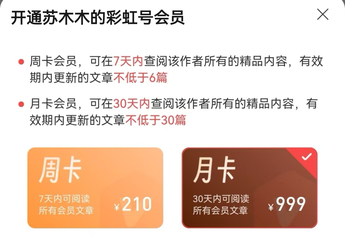 温馨提示:苏木木已开通会员文章,个人建议购买周卡/月卡比较划算,可以查看有效期内所有的会员文章,不需要额外的去单篇解锁哦!大家可以根据自己的需求随意选择哈,最后感谢一直以来支持我的粉丝朋友们,由衷的祝愿你们2025年心想事成,好运常伴!!!