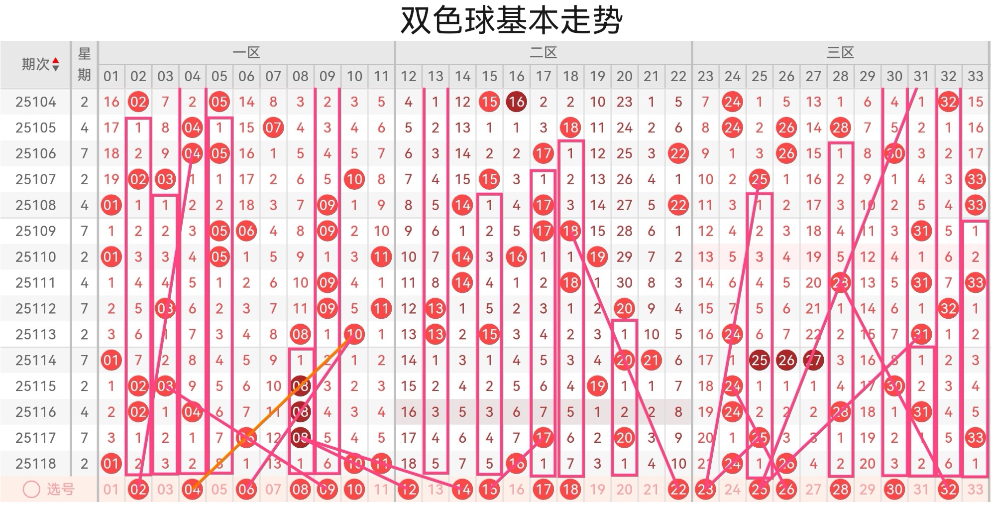 双色球第25118期基本走势分析(上期会员文章大底中4+0)