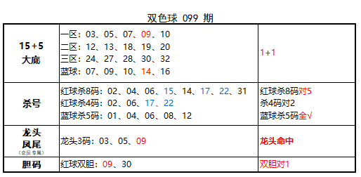上期红球杀8码对5,免费文章杀4码对2,蓝球杀5码全对,龙头命中,双胆对1,大底命中1+1,本期再接再厉!