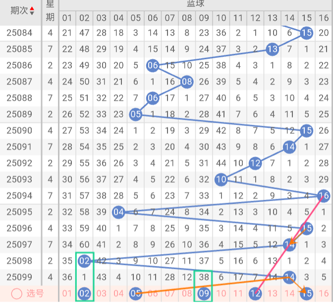 本期蓝球推荐关注号码:02、05、09、12、15。