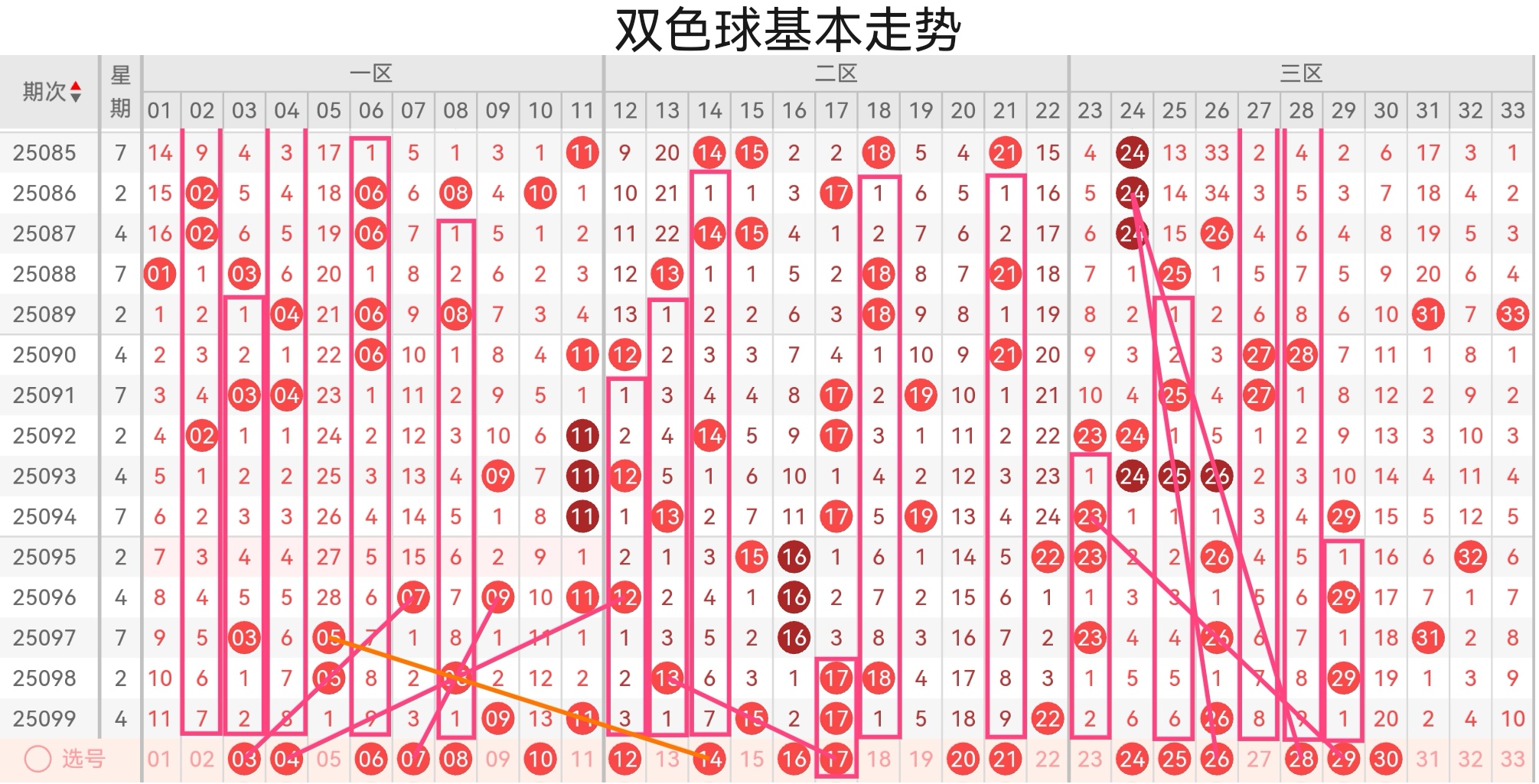双色球第25100期基本走势分析(上期重码二中一,杀八蓝正确)