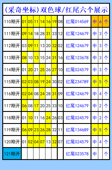 双色球第121期图文(采奇坐标),红尾六个展示