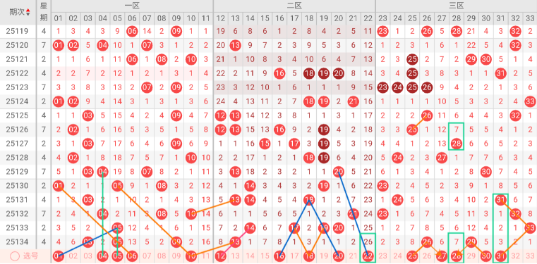 根据以上特点,我们对双色球第25135期进行如下分析: