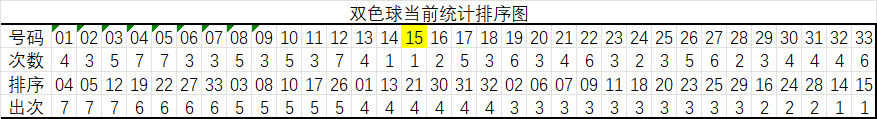红球15码大底统计顺序:04,05,19,22,27,33,03,10,17,26,01,13,21,31,32
