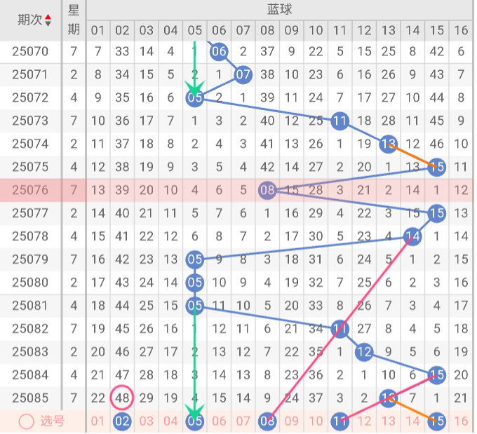 结合以上因素,本期蓝球推荐关注号码:02、05、08、11、15。